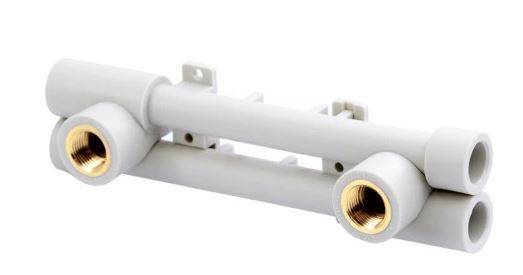 PPR nástěnný průchozí komplet 20 × 1/2" (PRAWTECH) je montážní jednotka z PP-R s vnitřními závity 1/2", určená pro pevné a přesné uchycení nástěnných baterií v PPR rozvodech. Průchozí provedení umožňuje pokračování potrubí v přímé linii a současně vytvoření dvou vývodů pro baterii.