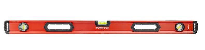 Profesionální hliníková vodováha FESTA délky 1000 mm s elektronicky testovanou přesností 0,5 mm/m. Robustní profilovaný a vyztužený profil se sílou stěny 2,2 mm, 3 akrylátové libely a 2 ergonomická madla pro jisté měření na stavbě i v dílně.