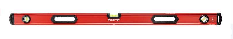 Vodováha s madly FESTA 120 cm – 3 libely Profesionální hliníková vodováha FESTA délky 1200 mm s elektronicky testovanou přesností 0,5 mm/m . Robustní profilovaný a vyztužený profil se sílou stěny 2,2 mm , 3 akrylátové libely a 2 ergonomická madla pro jisté a pohodlné měření na stavbě i v dílně.