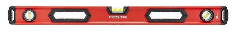 Vodováha s madly FESTA 80 cm – 3 libely Profesionální hliníková vodováha FESTA délky 800 mm s elektronicky testovanou přesností 0,5 mm/m . Robustní vyztužený profil (síla stěny 2,2 mm ), 3 akrylátové libely a 2 ergonomická madla pro jisté a komfortní měření na stavbě i v dílně.